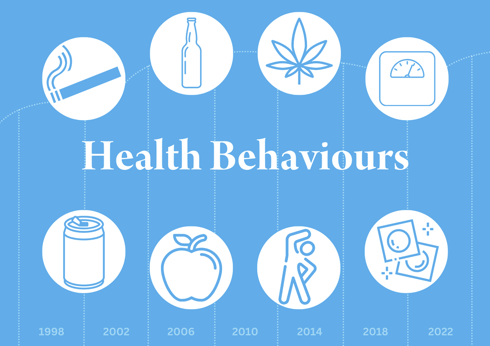 There was a marked decrease in tobacco, alcohol, and cannabis use. Conversely, there was an increase in children reporting trying to lose weight, going to school or bed hungry, and increasing fruit intake. A decrease in soft drink intake was also noteworthy. Both toothbrushing and seatbelt use rose. There was an overall decline in 15-17 year olds who reported ever having had sexual intercourse, and fewer young people reported using a condom at last sexual intercourse.